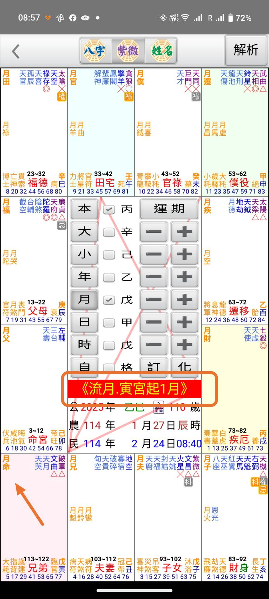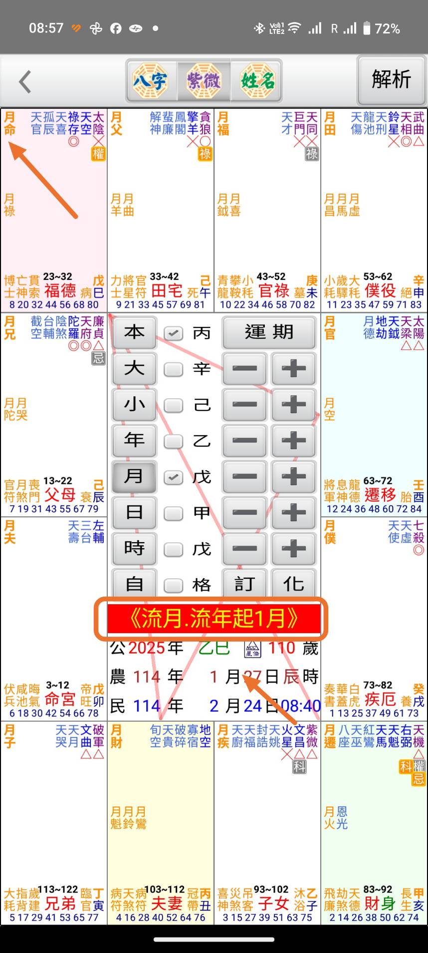 星僑紫微論命流月參數說明 發佈日期: 2025 年 09 月 24 日 作者: nccsoft 紫微斗數流月排法有不同的派別起法,目前我們提供3個流月參數讓客戶選擇,客戶可以到參數設定中自行設定,以下說明3穜方法的排法 NCC-A07 T07 M07 紫微論命 NCC-907 紫微論命 斗君起一月:這是紫微斗數全書中的排法,我們預設是用這個排法,用流年斗君起一月 流年起一月:用目前流年的命宮起一月 寅宮起一月:固定用寅宮起一起