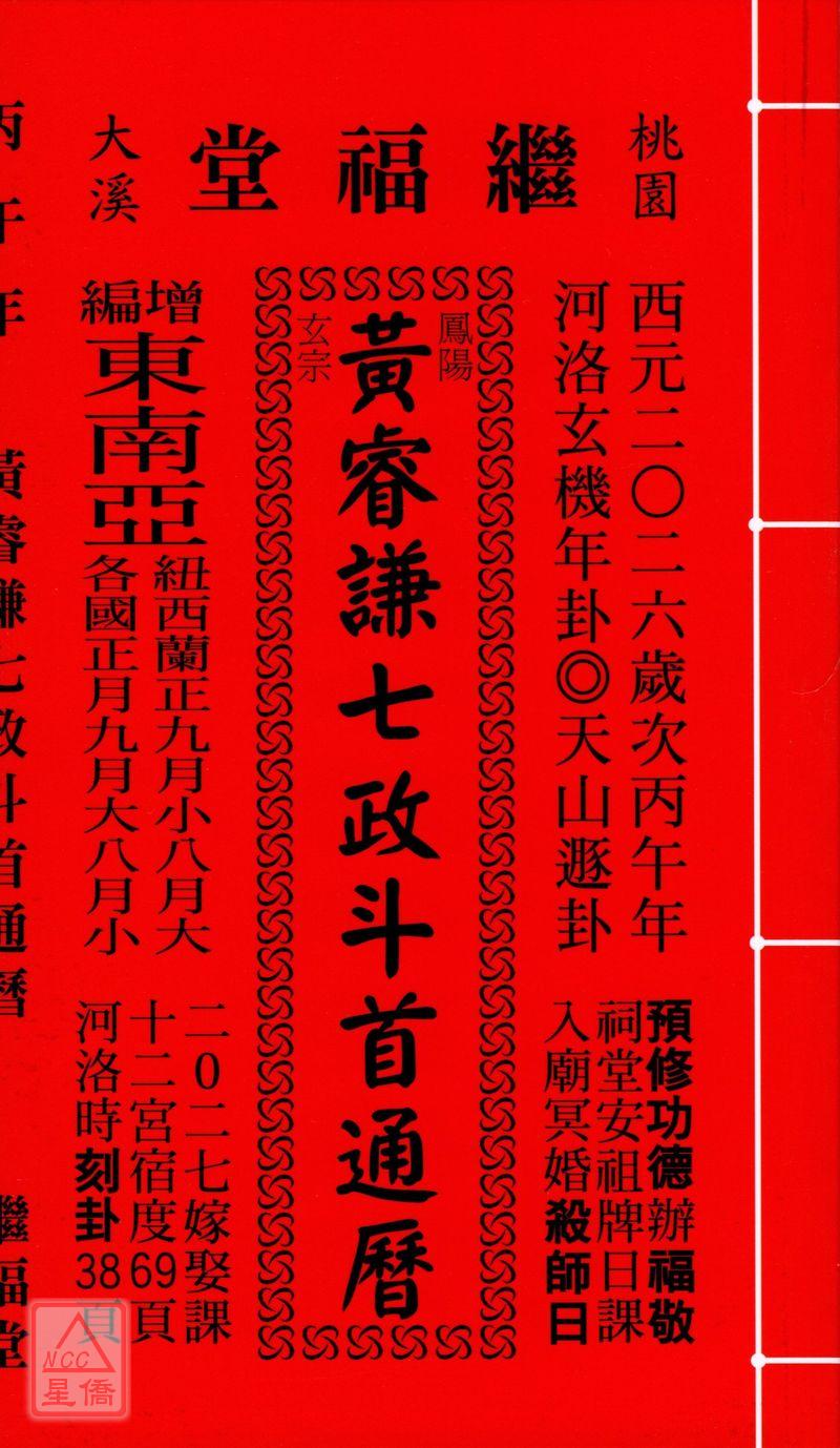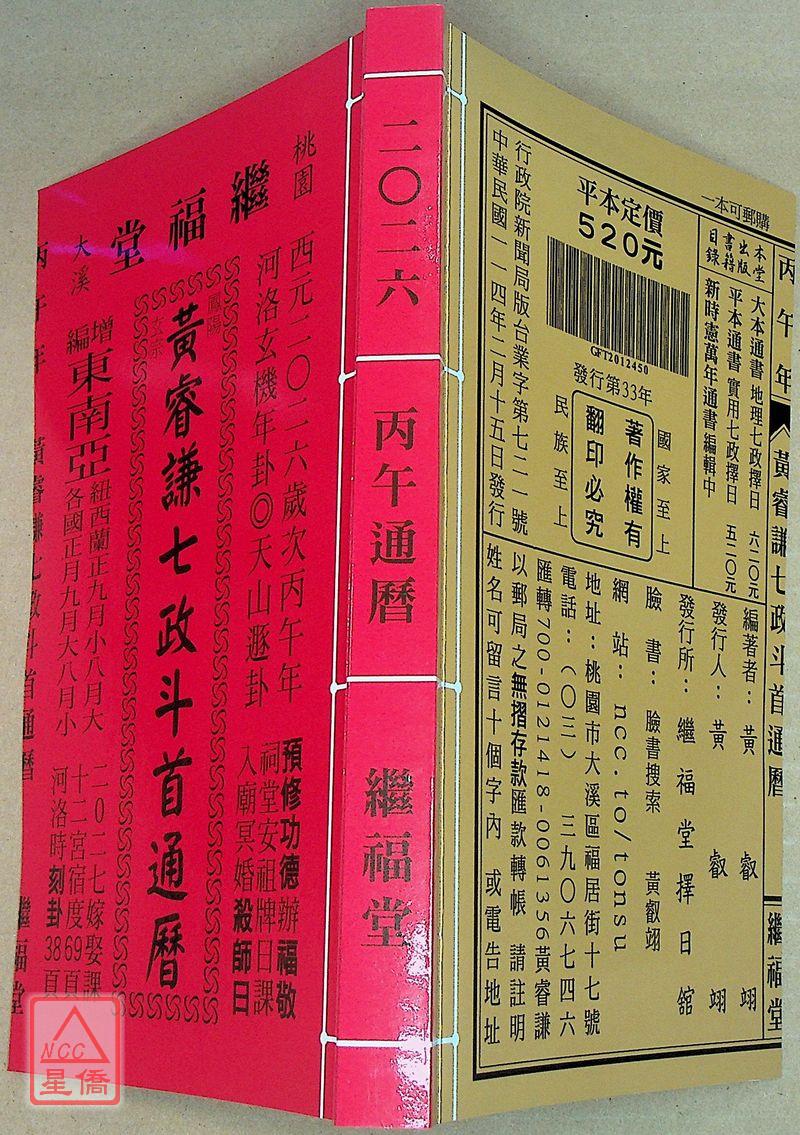 2026黃睿謙七政斗首通曆(平本通書)【民國115年】丙午