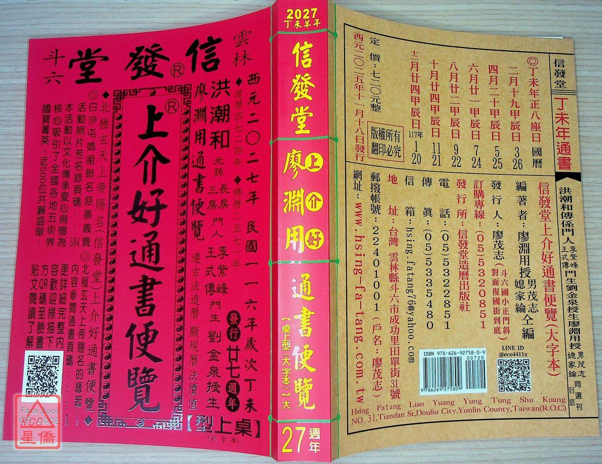 2027上介好廖淵用通書便覽(大字本)【民國116年】丁未