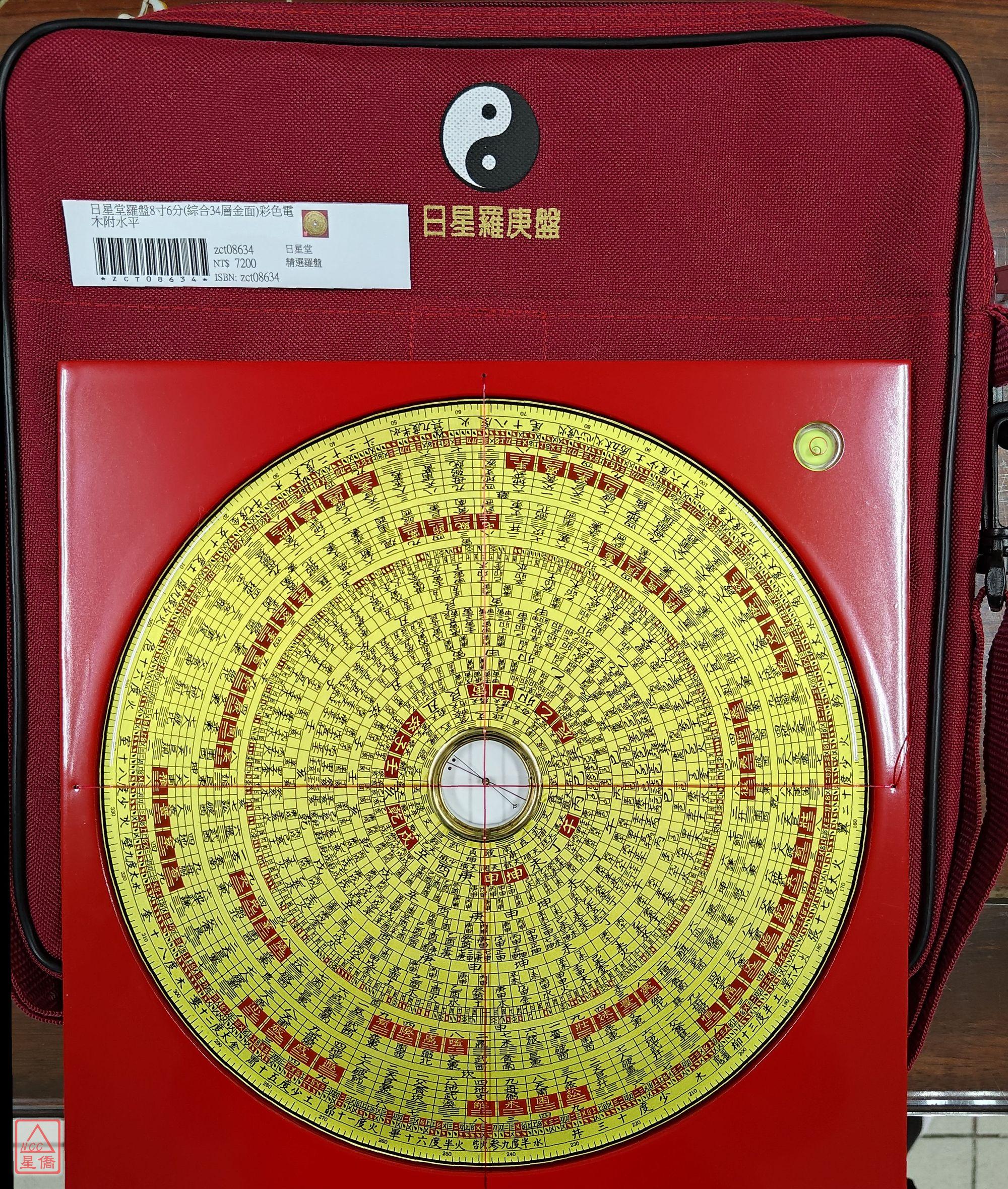 日星堂羅盤8寸6分(綜合34層金面)彩色電木附水平